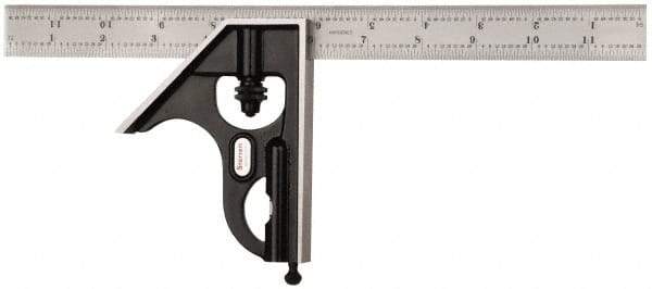 Starrett - 2 Piece, 12" Combination Square Set - 1/16, 1/32, 1/64 & 1/8" (4R) Graduation, Steel Blade, Forged Steel Square Head