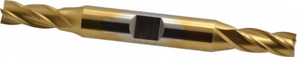 Cleveland - 9/32", 0.688" LOC, 3/8" Shank Diam, 3-3/8" OAL, 4 Flute, High Speed Steel Square End Mill - Double End, TiN Finish, Spiral Flute, 30° Helix, Centercutting, Right Hand Cut, Right Hand Flute, Series HD-4C