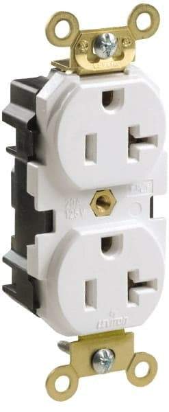 Leviton - 125 VAC, 15 Amp, 5-15R NEMA Configuration, Ivory, Industrial Grade, Self Grounding Duplex Receptacle - 1 Phase, 2 Poles, 3 Wire, Flush Mount, Impact and Tamper Resistant