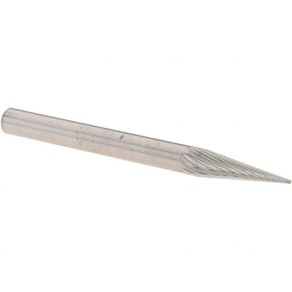 M.A. Ford - 1/8" Cut Diam, 1/8" Shank Diam, Cone Head Double Cut Burr - Carbide, Point End, 7/16" LOC, 1-1/2" OAL
