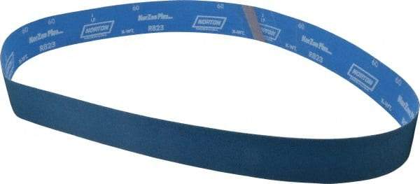 Norton - 2-1/2" Wide x 60" OAL, 60 Grit, Zirconia Alumina Abrasive Belt - Zirconia Alumina, Medium, Coated, X Weighted Cloth Backing, Series R823