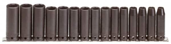Proto - 15 Piece 1/2" Drive Deep Impact Socket Set - 6 Points, 10 to 24mm, Metric Measurement Standard