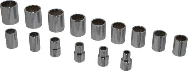 Proto - 15 Piece 1/2" Drive Socket Set - 12 Points, 3/8" to 1-1/4" Range, Inch Measurement Standard - Benchmark Tooling