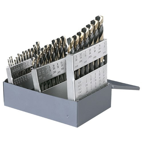 1/16-1/2 RHS / RHC HSS 135 Degree Split Point Heavy Duty Black & Gold Mechanics Length Drill Set - Black & Gold
