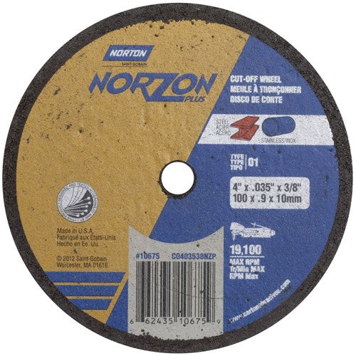 4″ × 0.035″ × 3/8″ NorZon Plus Small Diameter Cut-Off Wheel Type 01 Straight Aluminum Oxide
