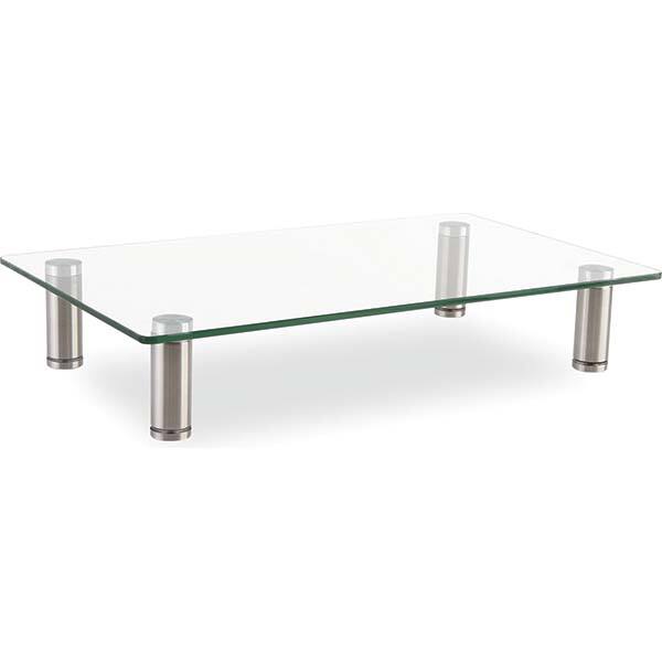 Detailed Product Description | Adjustable Tempered Glass Monitor Riser, 15 3/4 x 9 1/2 x 3 1/2, Clear/Silver |