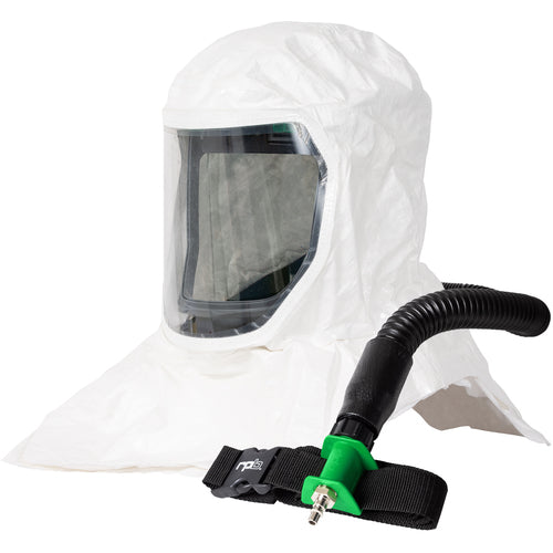Includes | 17-110 T-Link Bump Cap Assembly, 17-713 Tychem 4000 Sealed Seams Hood, 04-833 SAR Breathing Tube, 03-101 Constant Flow Valve - NIOSH |