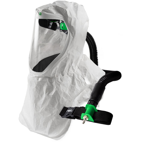 Includes | 17-200-12 T200 Air Duct/Head Harness Assembly with 17-713 Tychem 4000 Sealed Seams Hood, 04-833 SAR Breathing Tube, 03-101 Constant Flow Valve - NIOSH |