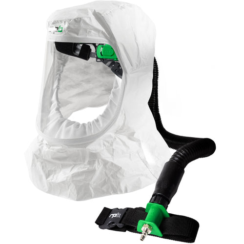 Includes | 17-200-32 T200 Air Duct/Head Harness Assembly with 17-732 Tychem 2000 Shoulder Length Face Seal Hood, 04-833 SAR Breathing Tube, 03-101 Constant Flow Valve - NIOSH |