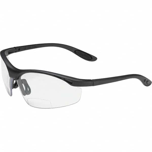 Magnifying Safety Glasses; Diopter Lens: +1 ; Lens Coating: Scratch Resistant ; Frame Style: Semi-Frameless ; Frame Color: Black ; Adjustable Temples: No ; Lens Color Family: Clear
